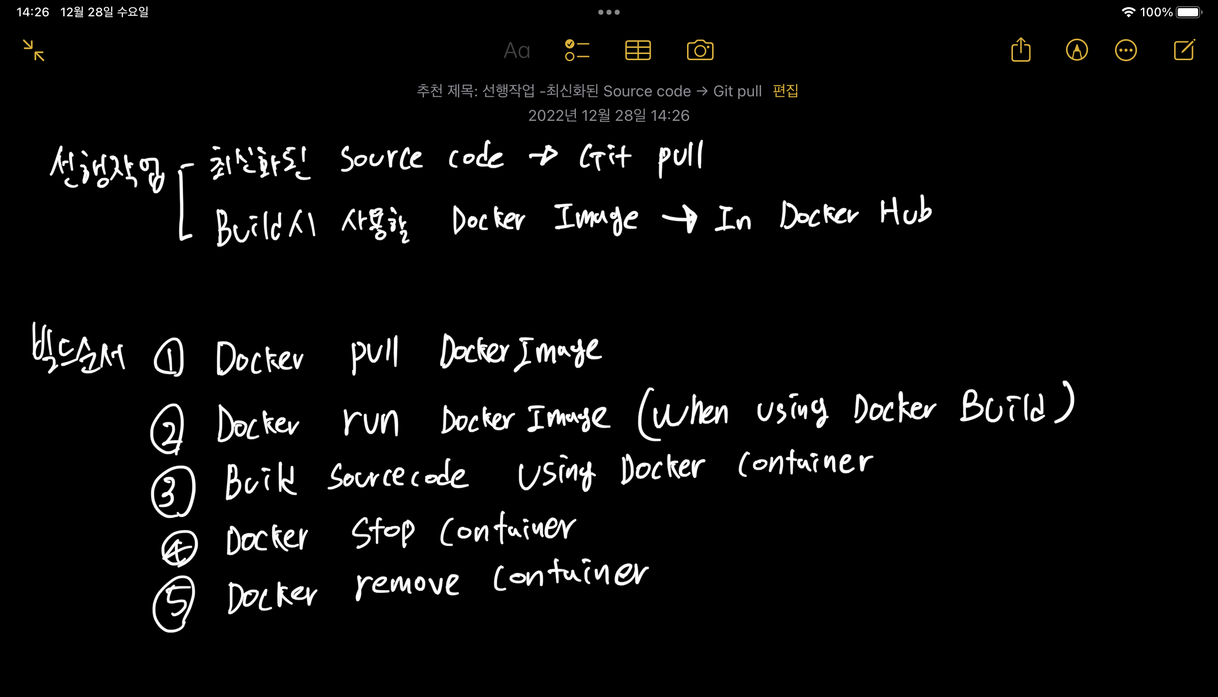 우선 선행 작업으로 이전 포스팅에서 만든 GitManager로 Pull 받은 최신 source code가 있어야 한다. 그리고 그 source code를 build 할 수 있는 Language(jdk, php 등) 혹은 Language Package Manager(NPM, Composer 등)가 설치되어 있는 DockerImage가 필요했다.
